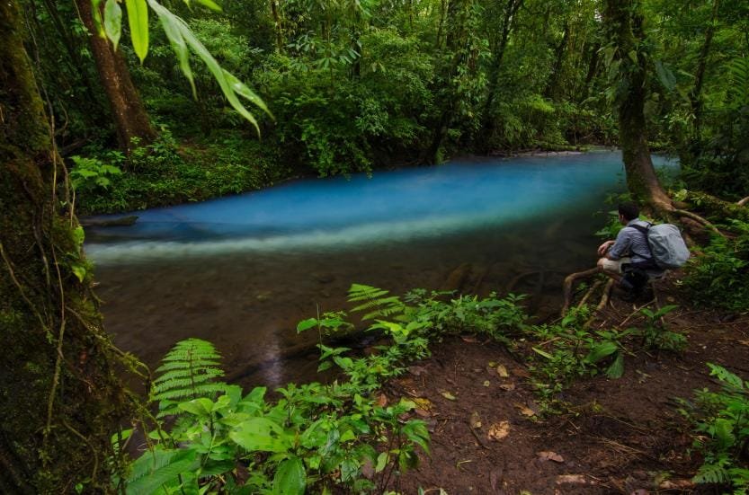 Mysterious and imposing! In the heart of the Tenorio Volcano National Park, hidden powers transform the junction of the Buena Vista & Roble rivers into a sky-blue stream. An extraordinary natural phenomena gives birth to most impressive Rio Celeste. Discover a beautiful Waterfall, fumaroles bubbling under water and hopefully, very strange wildlife along the magical river.